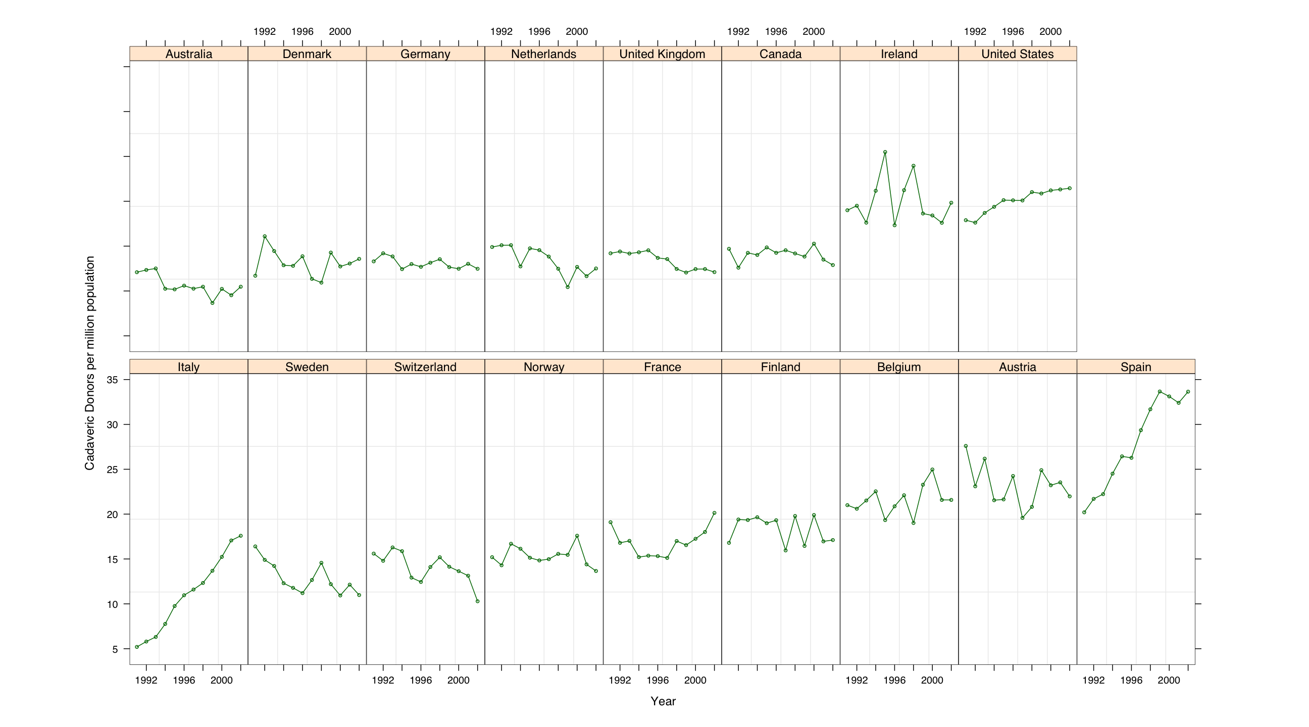 For example, take the following pairs of countries: Denmark and Sweden; the Netherlands and Belgium; Austria and Germany; and (depending on your individual perspective) France and the U.K. These are countries that we usually think of as rather similar in terms of culture, religion, etc., yet their levels of organ donations are very different.
