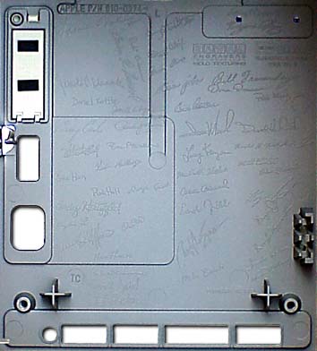 Since the Macintosh team were artists, it was only appropriate that we sign our work. Steve came up with the awesome idea of having each team member’s signature engraved on the hard tool that molded the plastic case, so our signatures would appear inside the case of every Mac that rolled off the production line. Most customers would never see them, since you needed a special tool to look inside, but we would take pride in knowing that our names were in there, even if no one else knew.