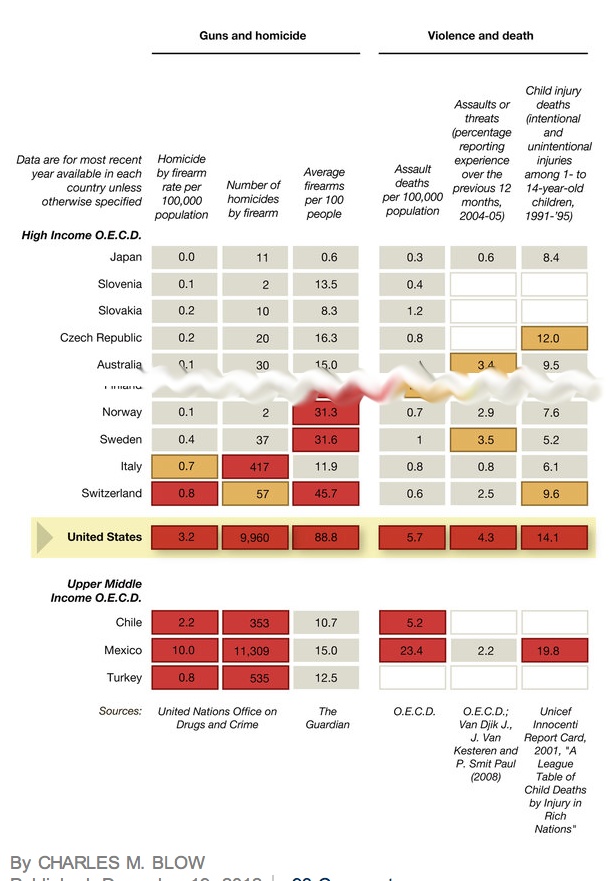 Today the New York Times has a column by Charles Blow presenting a table of various comparative, cross-national measures of violence. Here’s a clip: