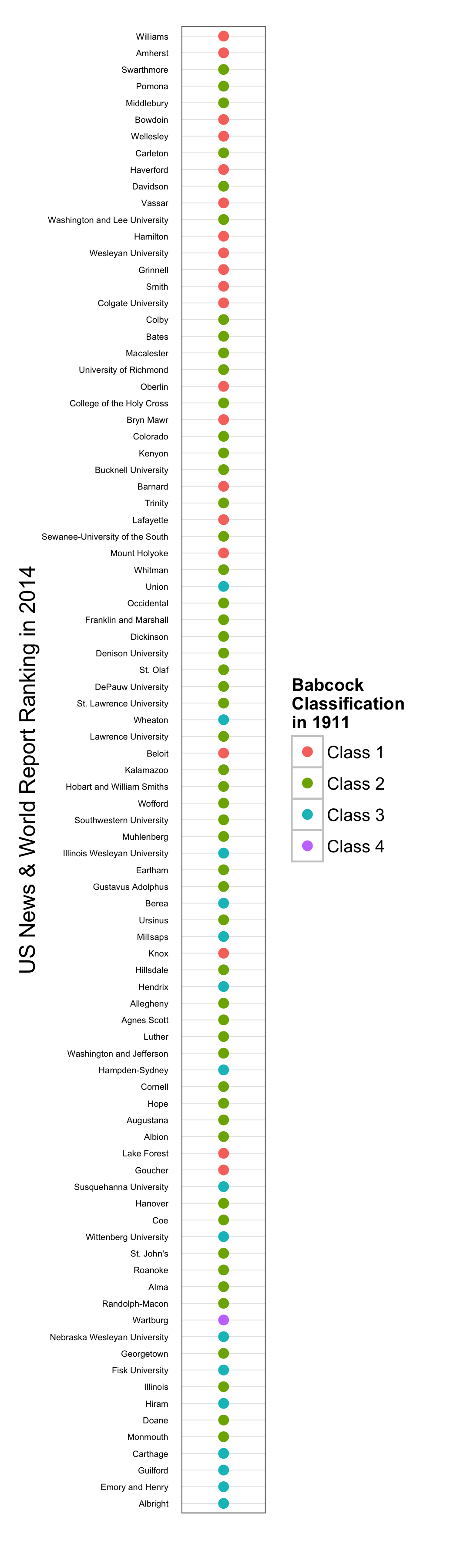 Babcock’s 1911 Classification and US News and World Report Rankings of Liberal Arts Colleges for 2014.
