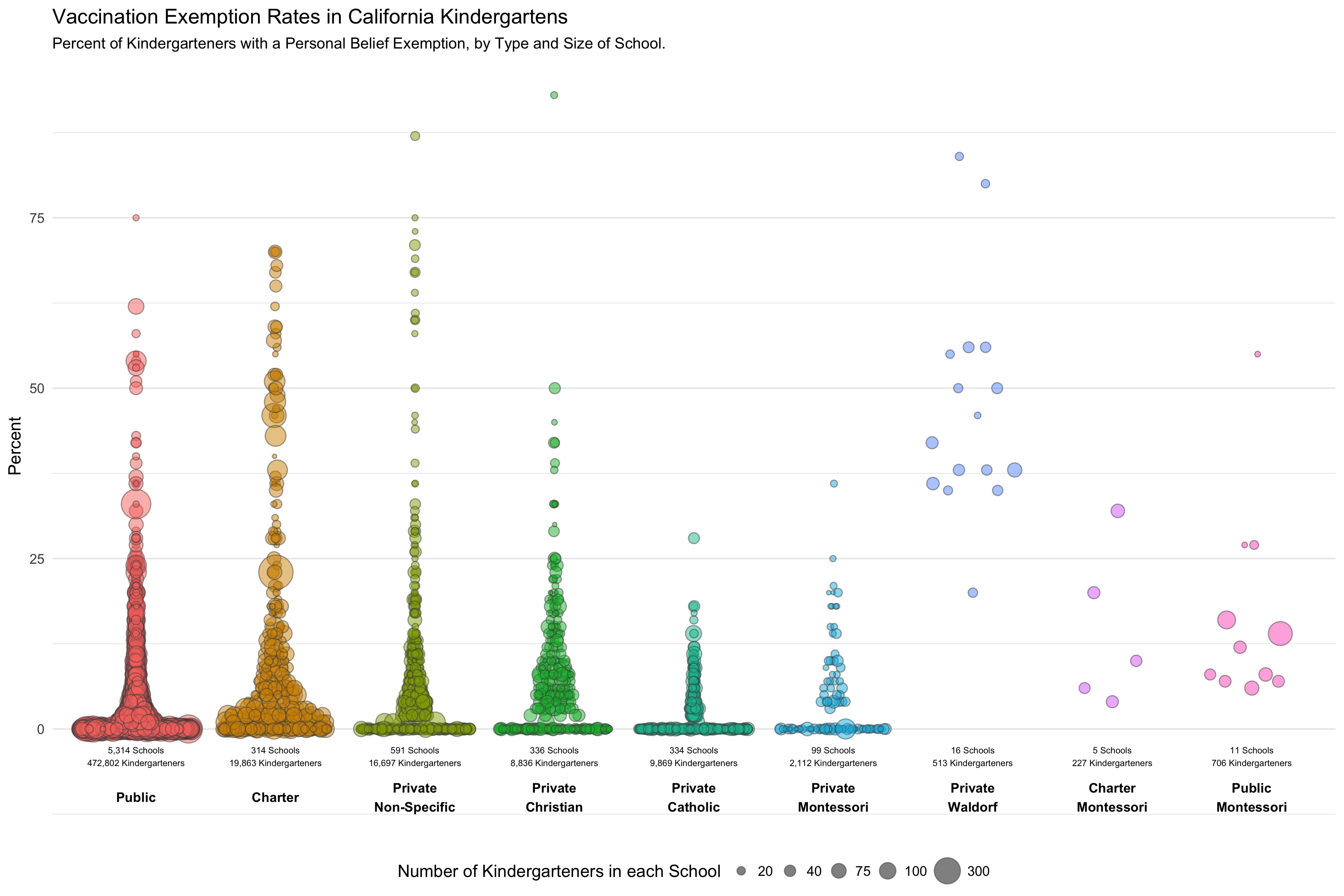 California Kindergarten PBE Rates by Type of School, 2014-15.