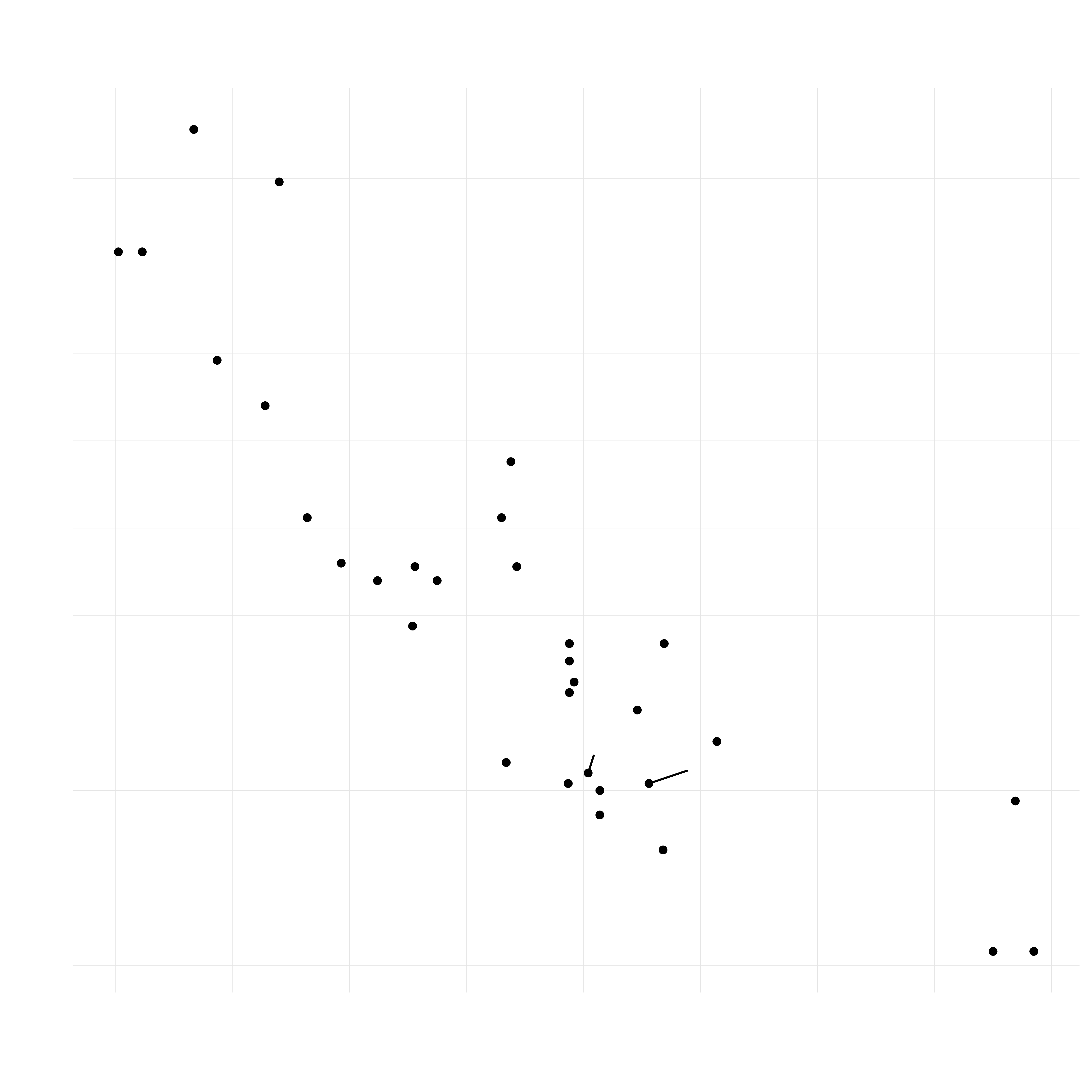 I make my plots in R, with ggplot usually. (And sometimes tinyplot. It’s good. You Base R snobs can bite me; I’ve been using R since it was a different letter.) Anyway, by default, R’s PDF graphics device does not embed fonts, presumably on the sensible grounds that the more you reject the Devil and all his Works, the better off you are. However, over the years, many people with fallen natures have devised various ways to truck with Satan and specifically to get fonts properly embedded in PDFs. Think of it as a process of building one’s house on a combination of other people’s houses, piles of sand, a variety of leftover construction paper, and ultimately the giant tangle of string mentioned before.