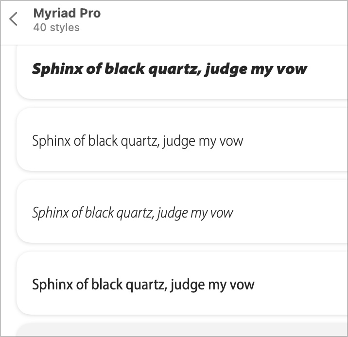 Styles inside the Myriad family.